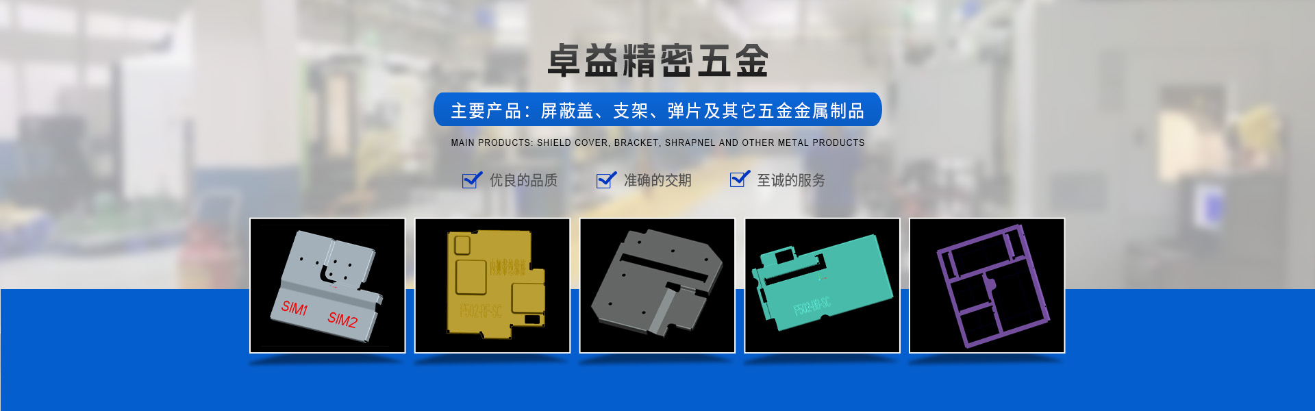 東莞市卓益精密五金有限公司(原深圳市卓杰五金有限公司)創(chuàng)辦于2008年,2016年由于公司業(yè)務及規(guī)模升級擴遷致東莞市。本公司是一家五金模具研發(fā)、五金產(chǎn)品制造及銷售為一體的專業(yè)制造性企業(yè)。目前主要產(chǎn)品有屏蔽蓋、支架、彈片及其它五金金屬制品。